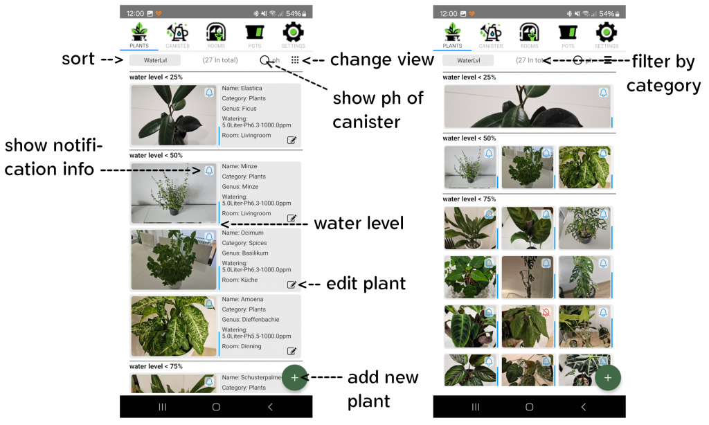 Esta visión general te ayuda a organizar tus plantas de manera óptima y siempre saber dónde se encuentra cada planta.